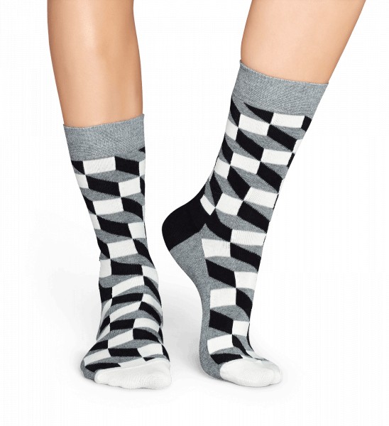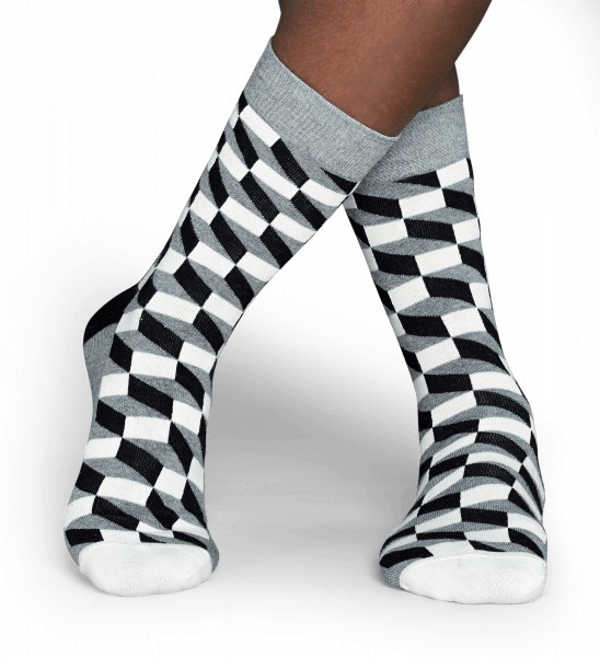 Los Filled Optic Socks Gris son los calcetines a cuadros grises de Happy Socks con efecto óptico.